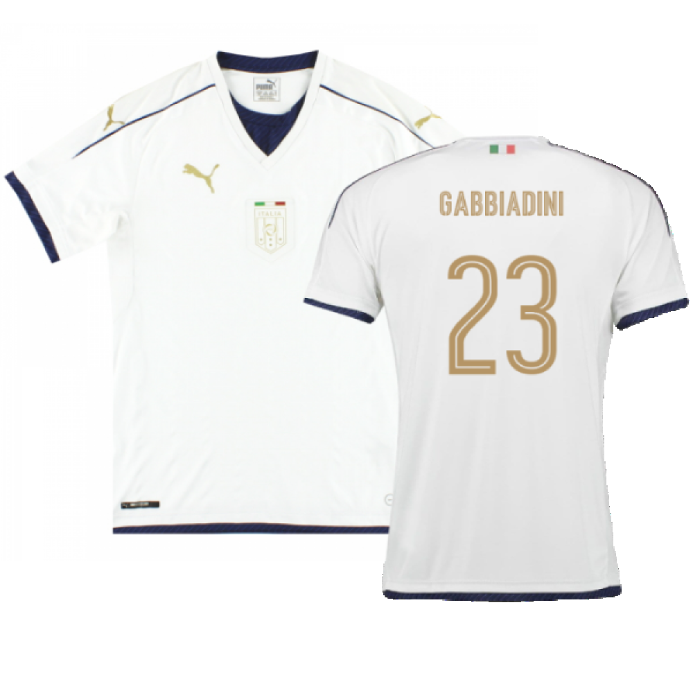 The Italy 2016-17 Away Shirt as worn by players such as Bonucci, Chiellini, De Rossi and Insigne as the team reached the Quarter Finals at Euro 2016.
