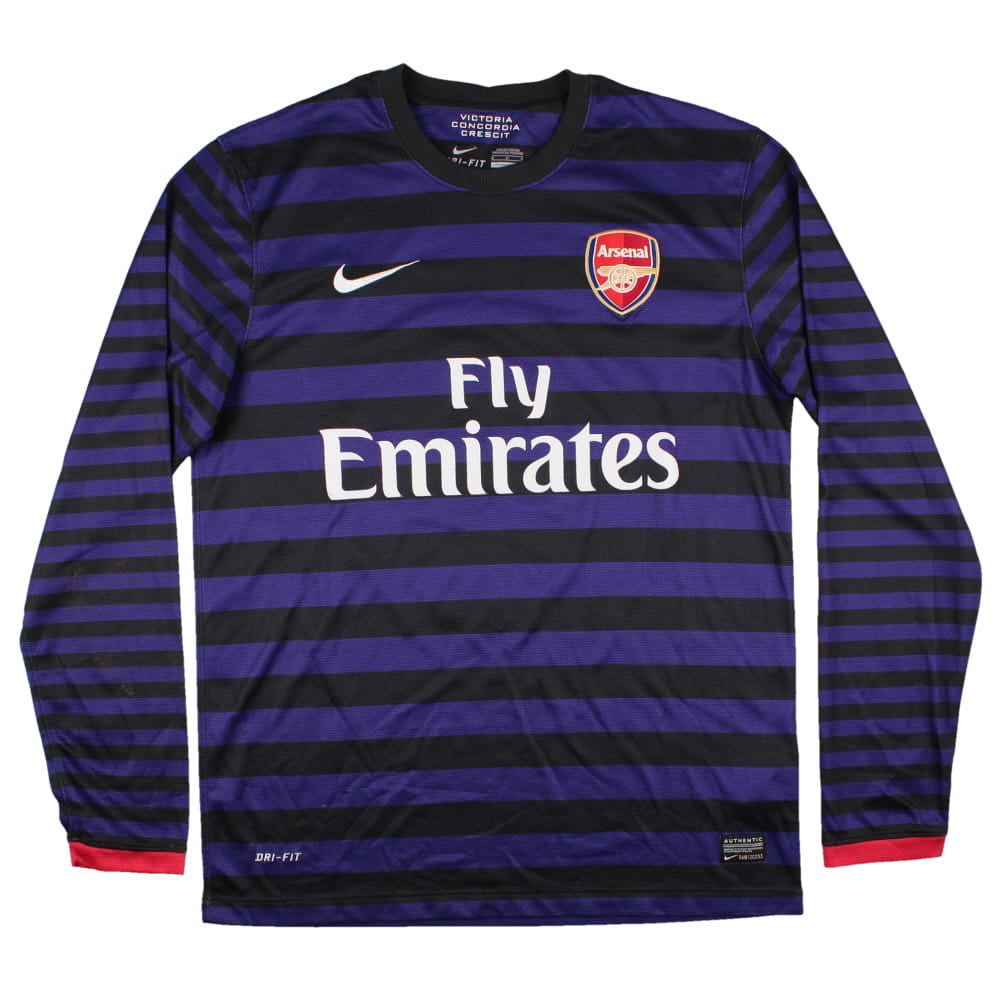 The Arsenal 2012-13 Away Long Sleeve Shirt as worn by players such as Giroud, Cazorla, Ramsey, Podolski and Mertesacker as the team finished 4th in the Premier League.
