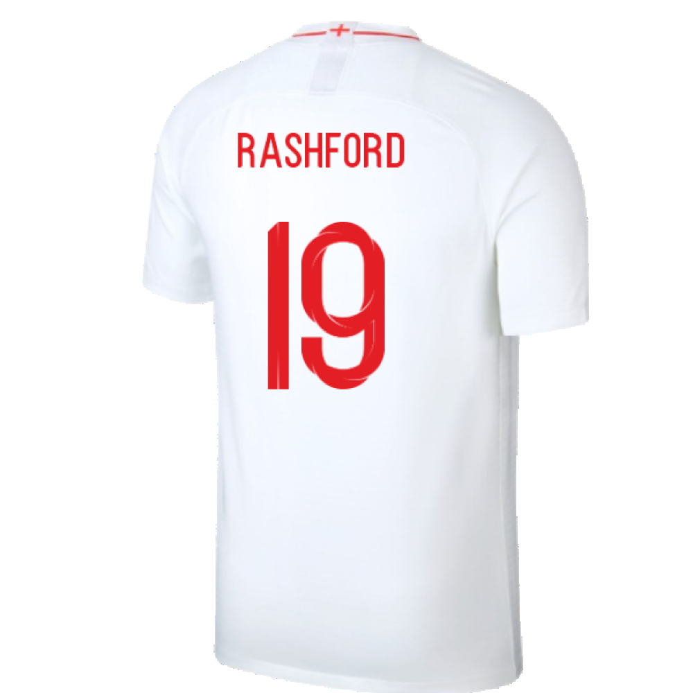 The England 2018-19 Home Shirt as worn by players such as Stirling, Lingard, Rashford, Alli and Kane as the team finished 4th in their group at the FIFA 2018 World Cup.