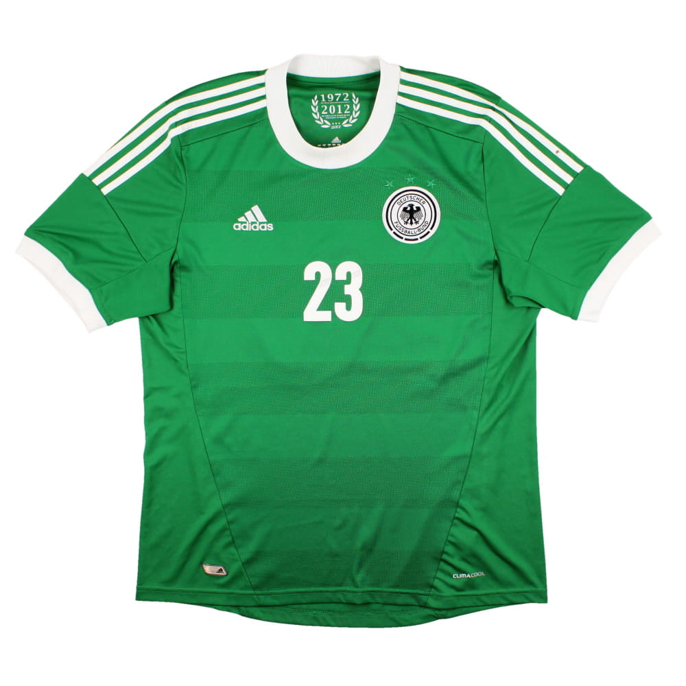 The Germany 2012-13 Away Shirt as worn by players such as Lahm, Gomez, Schweinsteiger, Klose, Podolski and Muller as the team reached the Semi-Finals at Euro 2012.