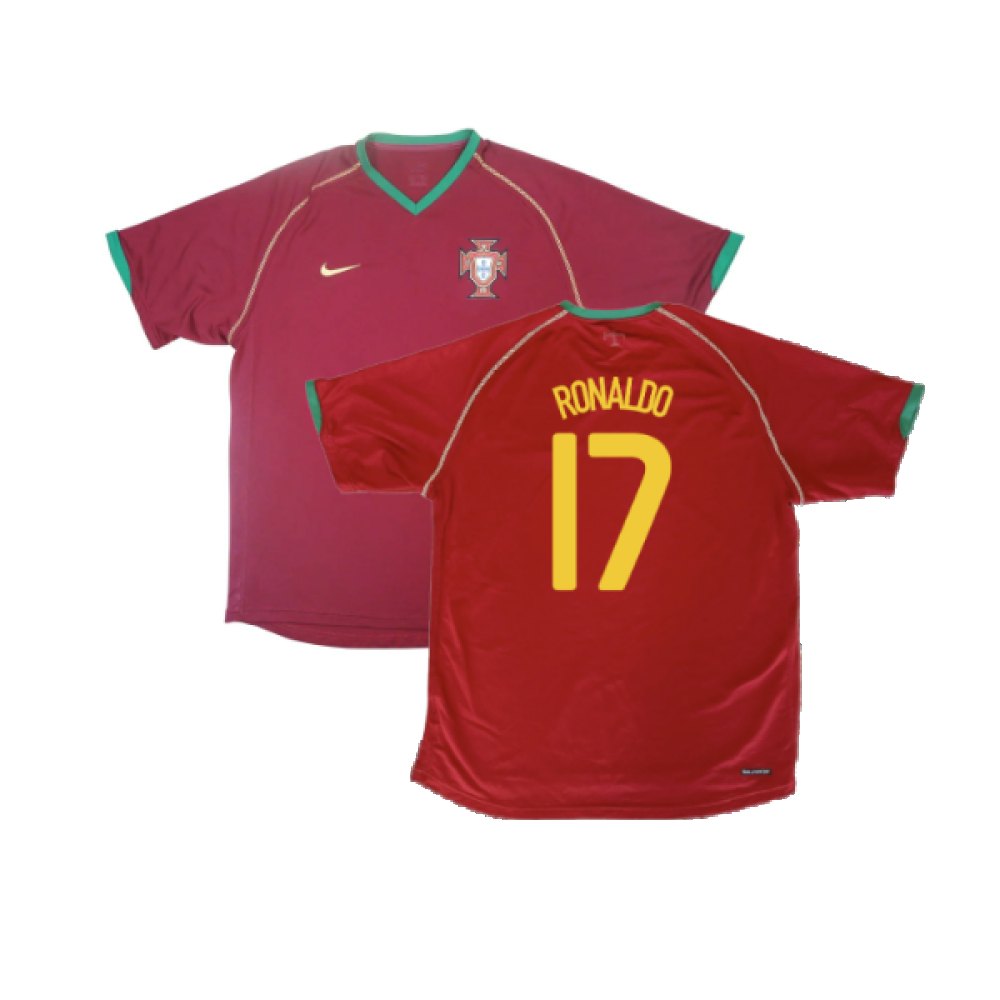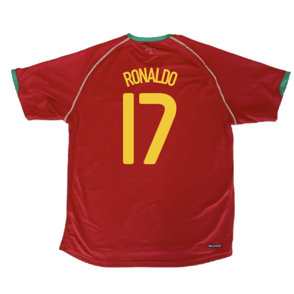 The Portugal 2006-08 Home Shirt as worn by players such as Migel, Deco, Ferreira, Figo and Cristiano Ronaldo as the team reached the semi finals at the 2006 FIFA World Cup.