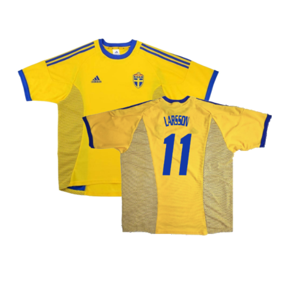The Sweden 2002-03 Home Shirt as worn by players such as Ibrahimovic, Larsson, Andersson and Ljungberg as the team reached the Round of 16 at the 2002 World Cup.